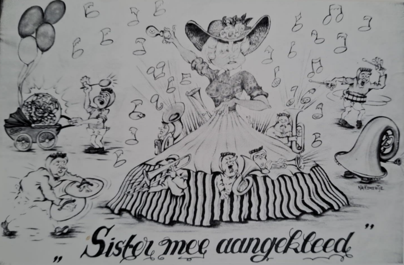 Muziek is heel belangrijk in Berrege. Berrege is rijk aan vele fanfares en harmonie orkesten én vergeet ook niet de muziekschol die stevig aan de weg timmerde. Burgemeester van der Laar was hier een groot voorstander van. Dit inspireerde Riny Hagenaars voor het ontwerp met het motto “D’un burreger mee zun meziekskes” goed voor de eerste prijs voor zowel het ontwerp als de groep.
